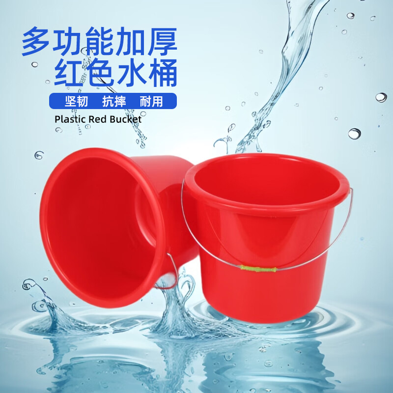 赤い手提げプラスチック家庭用バケツ生活用品中国結大紅桶学生寮風呂桶洗濯桶