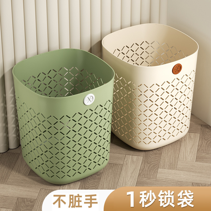 家庭用キッチンや寝室用の長いプラスチック製ゴミ箱、ゴミ袋を数秒でロック、蓋のない見栄えの良い紙バスケット