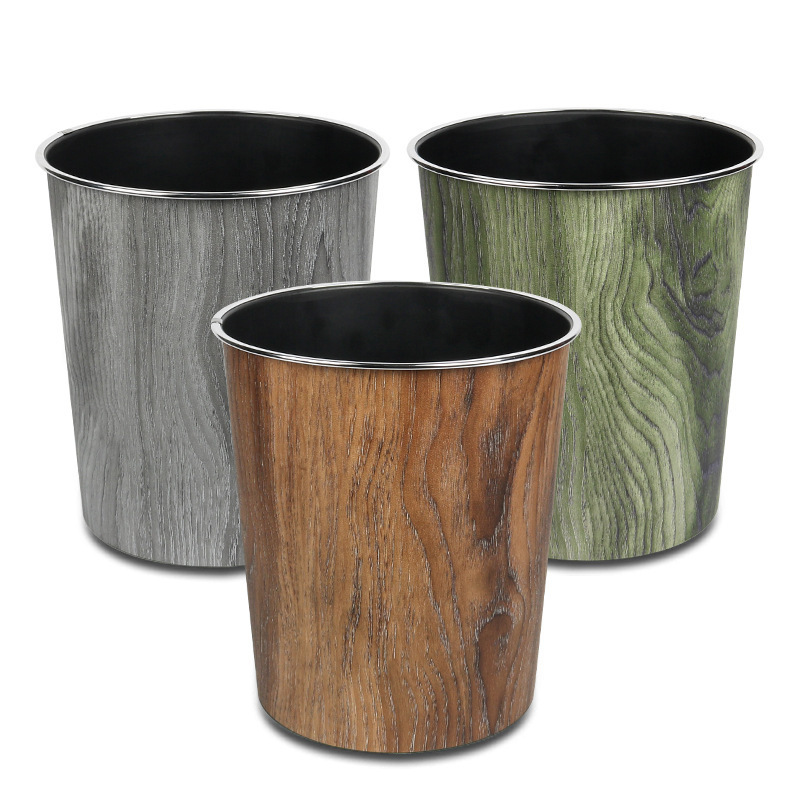 シンプルな蓋なし円形縁付きキッチン寝室トイレ木目プラスチックゴミ箱卸売り家庭用紙かごメーカー