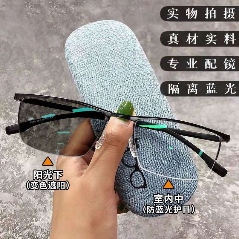 ビジネス半枠変色男性眼鏡男性抗ブルーレイ近視眼鏡には度数超軽量フレーム金属フレームがついている