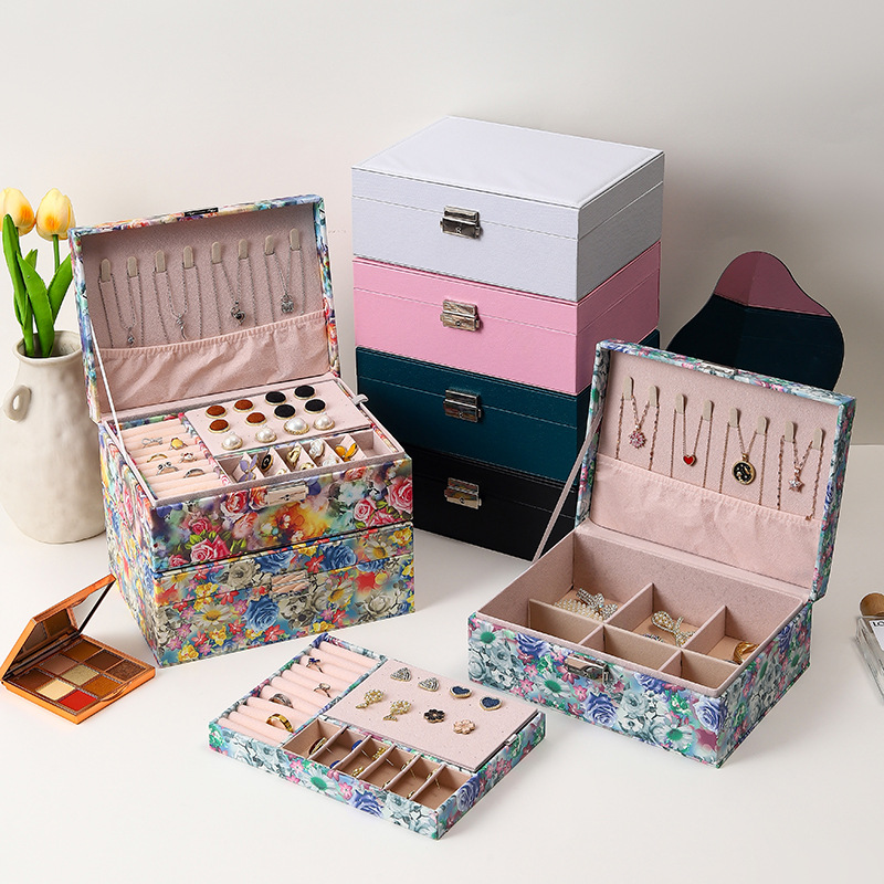 新型二層PUジュエリー収納ボックス、ジュエリー、イヤリング、指輪用防塵収納包装ボックス、ギフト卸売