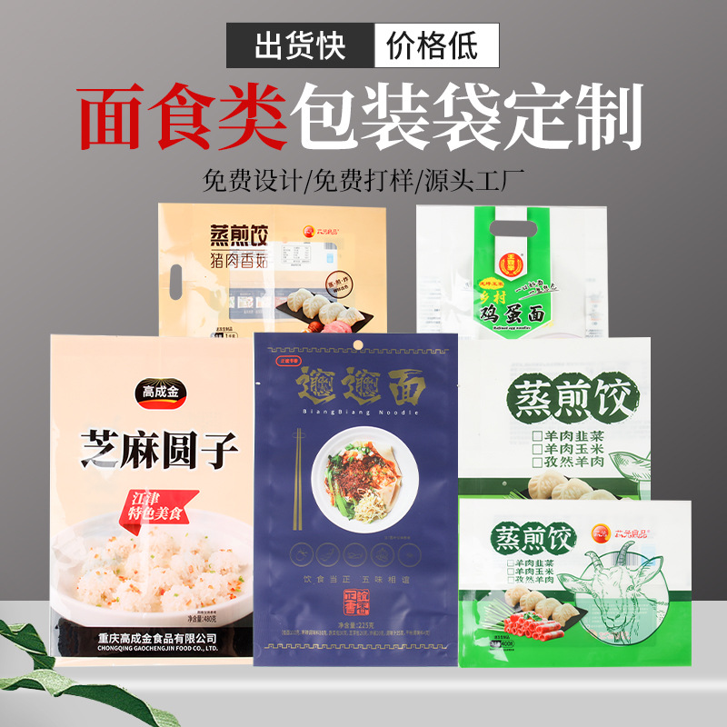 食品包装ビニール袋カスタム麺食品急凍食品カラー印刷ソフト包装袋三辺封自立袋カスタム