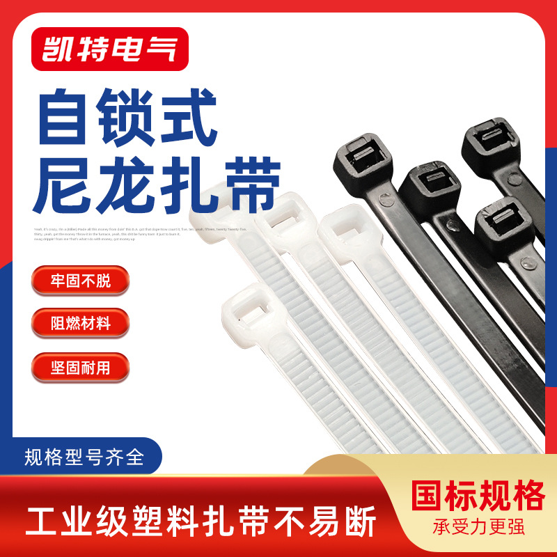 国標バンド黒色白色3*60から10*1200セルフロック式ナイロン条プラスチックバックル固定束線束