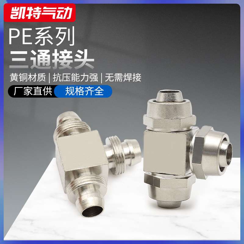 Pe4/6/8/10/12クイックねじ込み三方ホースガス管継手変径銅メッキニッケル空気圧素子
