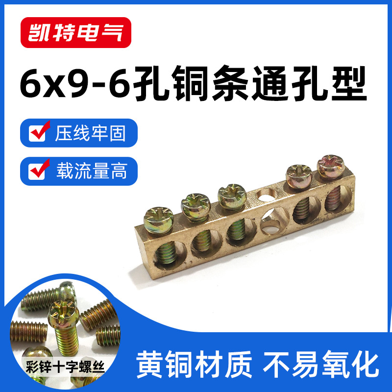 6穴銅条6*9黄銅零地列配線端子列配電箱バス列接地銅条