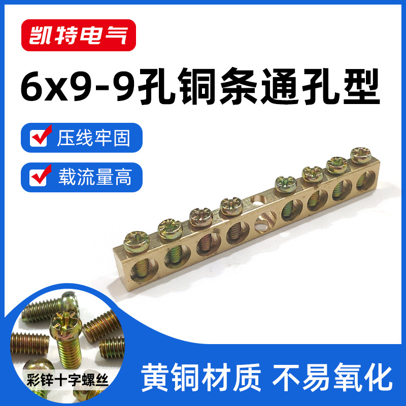 9穴銅条6*9黄銅零地列配線端子列配電箱バス列接地銅条