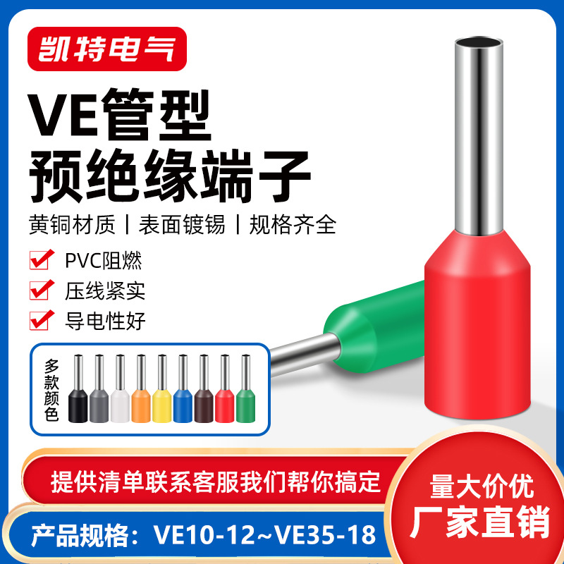Ve管型プレ絶縁VE0506-VE7512ヨーロッパ式針形端子管状錫メッキ管型配線ピン