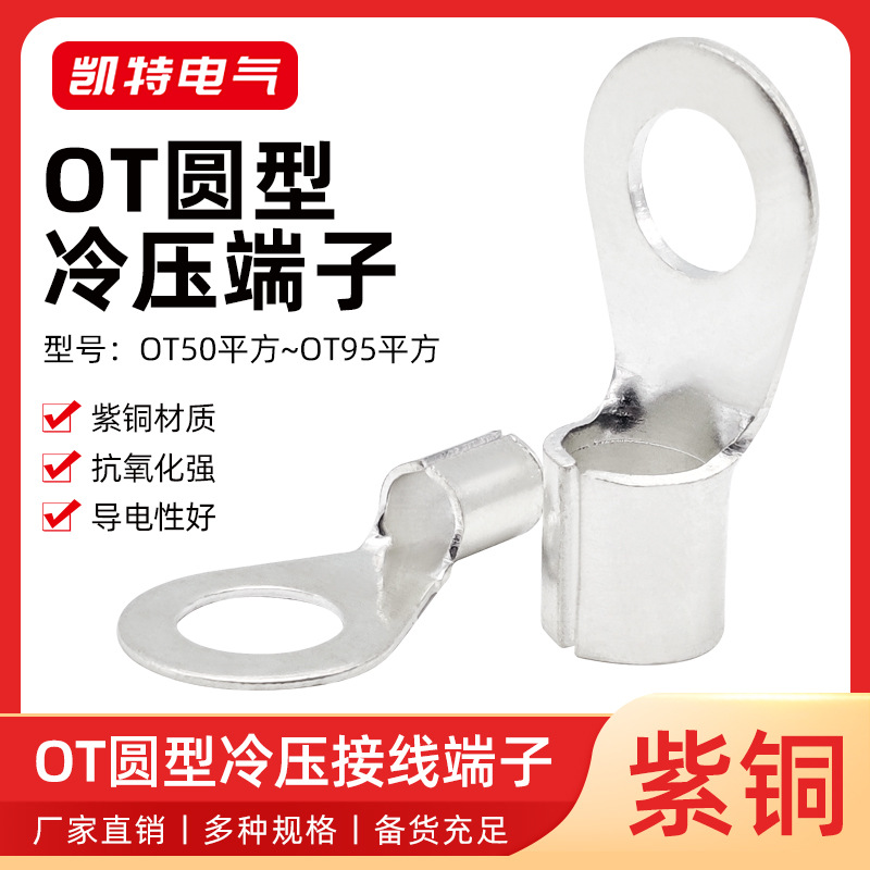 紫銅溶接口ot裸端子1/2.5/4/6/10/35/95平方冷圧配線耳円形ヘッド鼻