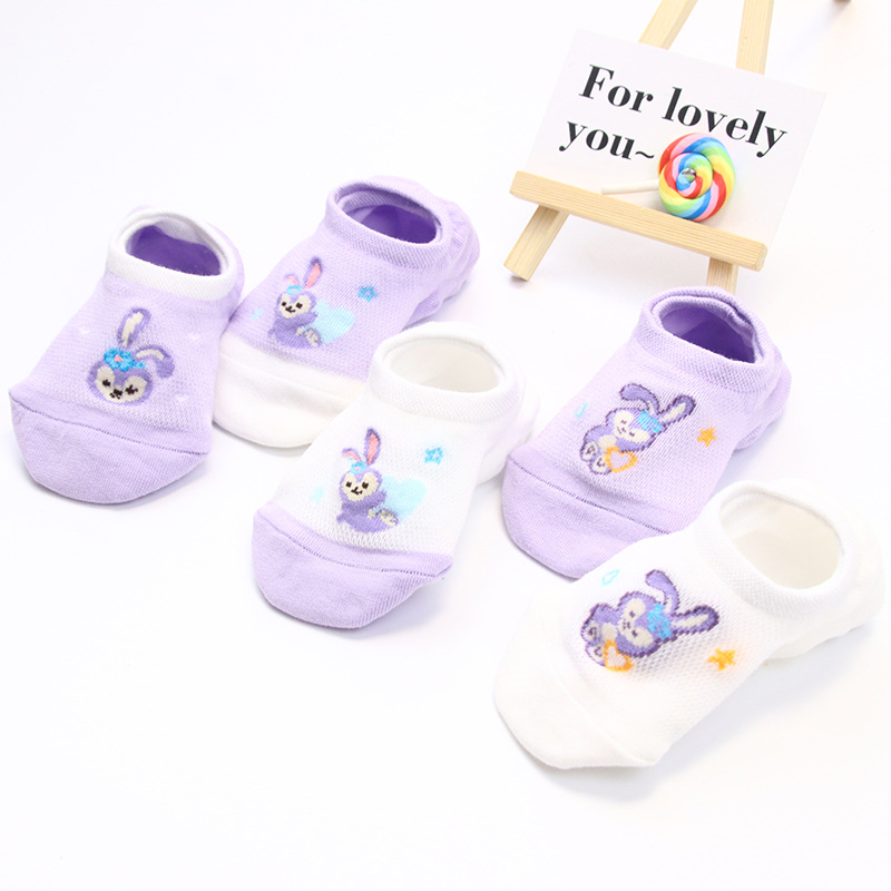 子供用靴下女の子夏メッシュ通気性シリコーン滑り止め紫色漫画かわいいボートソックス女の子赤ちゃんステルス
