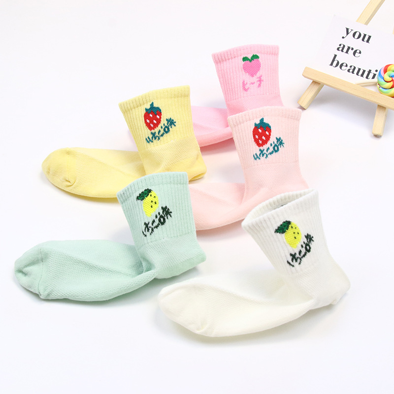 子供の靴下の女の子の夏の目の通気性の中で大きい子供の女の子の漫画の果物の学生の赤ちゃんの靴下