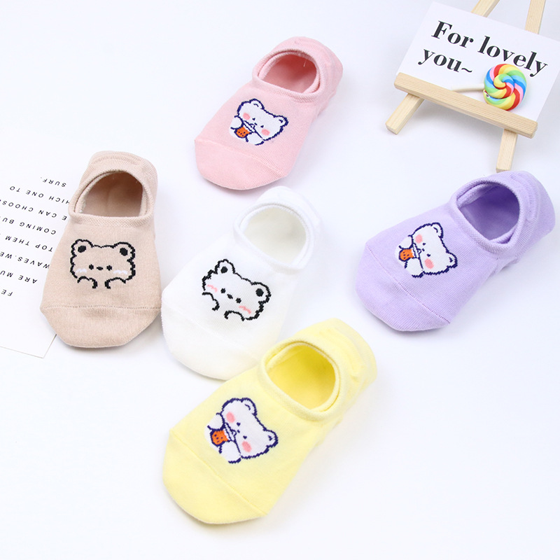 子供の靴下の夏の漫画のかわいい熊の女の子の船の靴下の中で大きい子供のシリコンの滑り止めの隠れた靴下