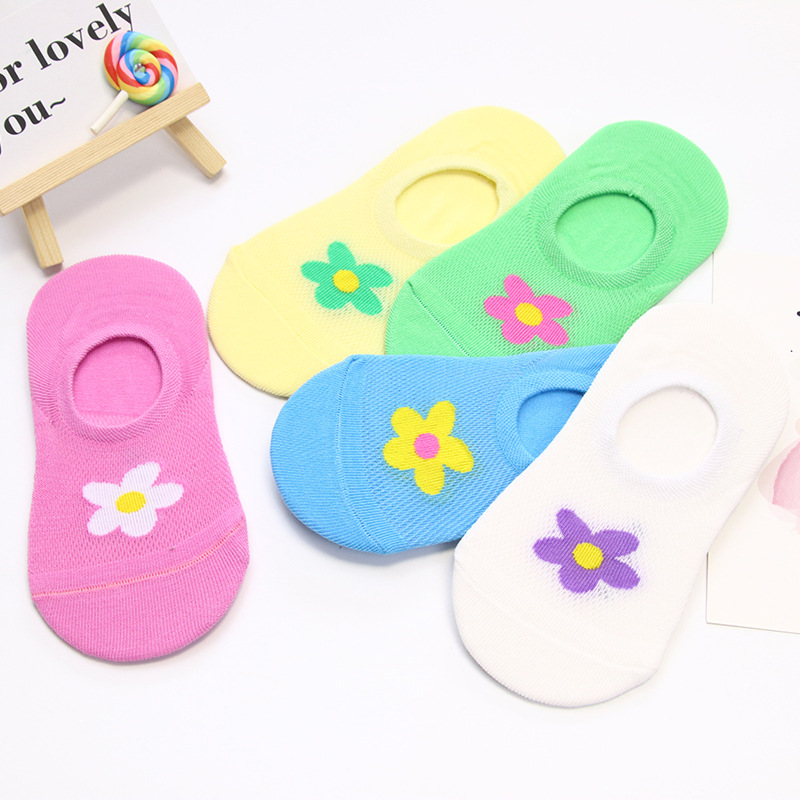 子供の靴下の夏の女の子の目の通気性の漫画の小さい花の船の靴下のシリコンの滑り止めの赤ちゃんの床の靴下は見えません。
