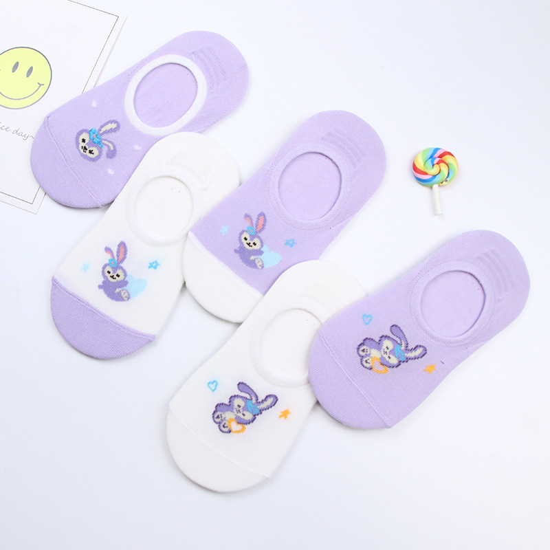 子供の靴下の女の子の夏のシリコンの滑り止めの漫画のかわいい紫色のウサギの中で大きい子供の赤ちゃんの船の靴下