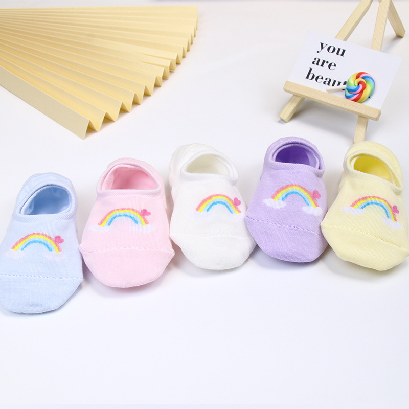 子供の靴下の女の子の夏の船の靴下の漫画のかわいい虹の1-15歳の女の子の赤ちゃんのシリコンの滑り止めの隠れた靴下