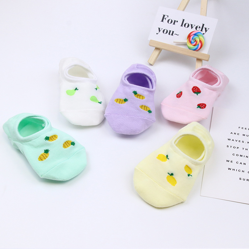 子供の靴下の夏の女の子の靴下の1-15歳の漫画のかわいい果物の赤ちゃんのシリコンゴムの滑り止めの学生の隠れた靴下