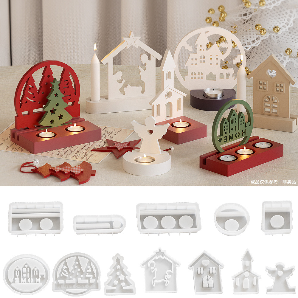Diy滴ゴム石膏万聖城家天使クリスマスツリー単孔二穴三穴ろうそく台シリコン金型