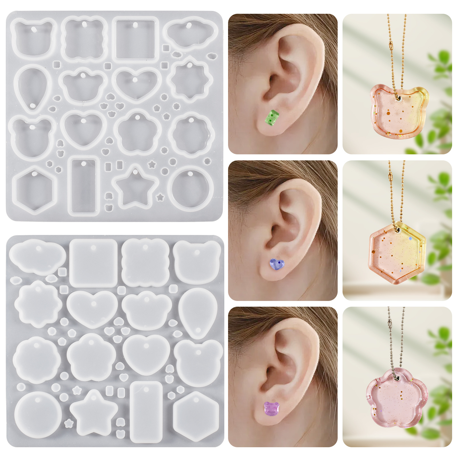 虞美人diy滴ゴム樹脂立体五芒星円形ハート形正方形ペンダントイヤリングシリコン金型