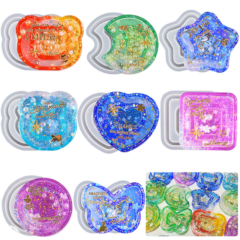 虞美人diy滴ゴム樹脂五芒星月二重流砂氷透鍵ボタン鏡面シリカゲル金型
