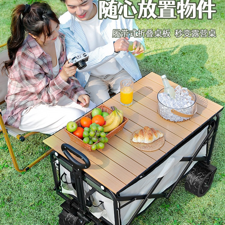 キャンプカート折りたたみ式屋外手押しピクニックカーキャンプトレーラートロリートラックテーブルボードキャンピングカー