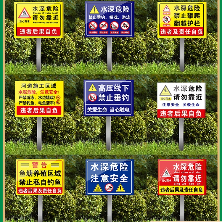 水深危険警告標識、注意標識、屋外広告標識、登山禁止標識、水深危険