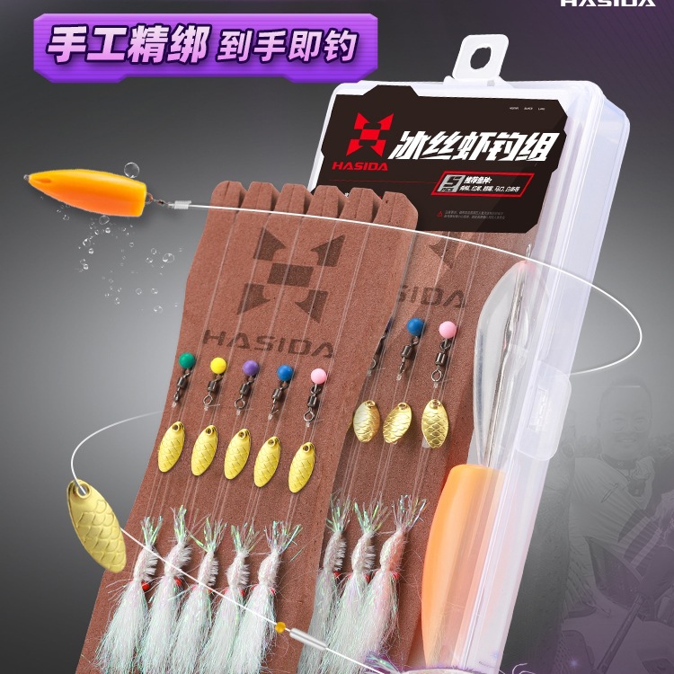 ハースタ アイスシルク エビ ルアー フェイクベイト フライフライフック ストリングフック フィッシングセット 精密結び ガーデンピース スパンコールセット