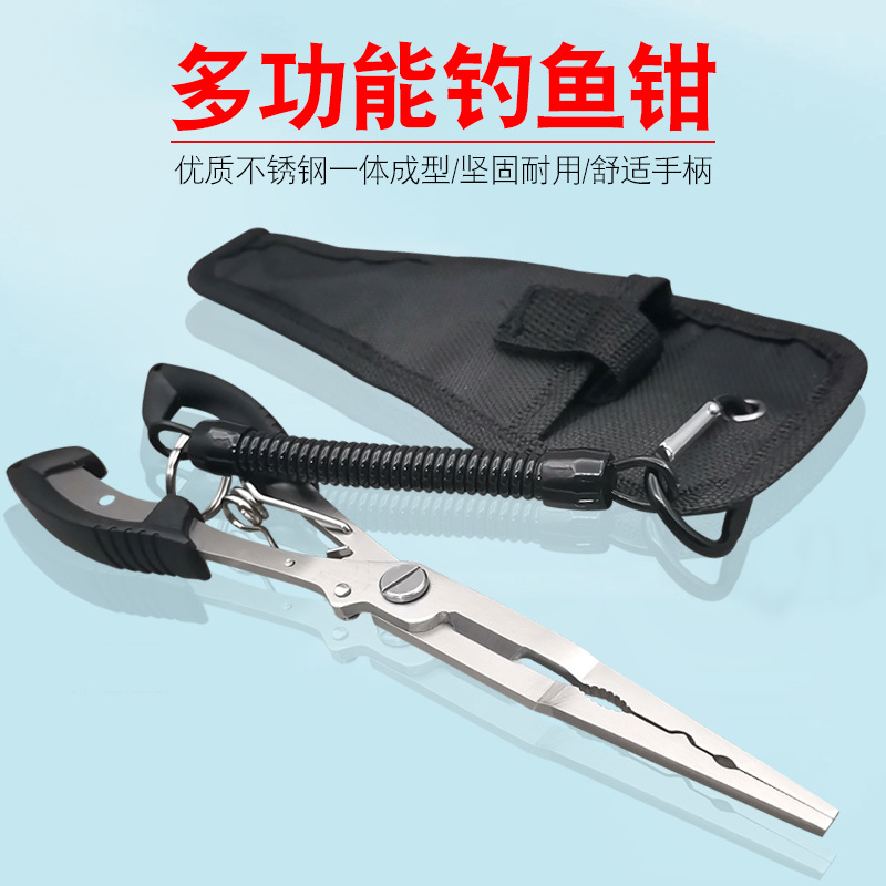 先のとがったストレート型の長い口のルアープライヤー、フック取り外しプライヤー、多機能釣りフック取り外し、釣り糸カットツール、ステンレス鋼