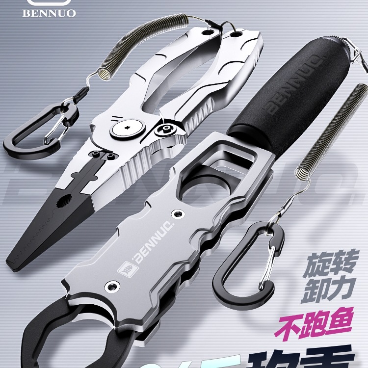 アルミ合金ルアープライヤー、フック取り外しリング、釣り糸カッター、大型釣り魚コントローラー、ポータブル滑り止め魚捕りツール