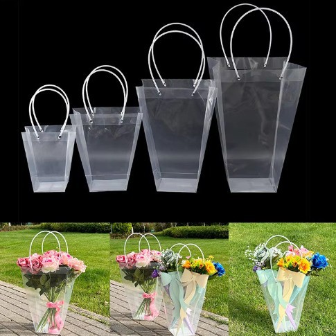 新しい透明台形手提げ花包装箱PVC花花束袋花屋透明袋と包装袋