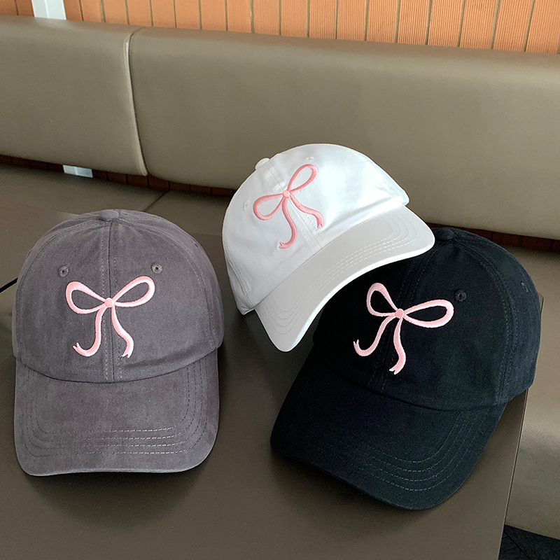 蝶結び野球帽 レディース 韓国風 刺繍入り 多用途 ハードトップ ブルー 可愛い ライトピンク 大きめ頭囲 深めトップ 小顔効果