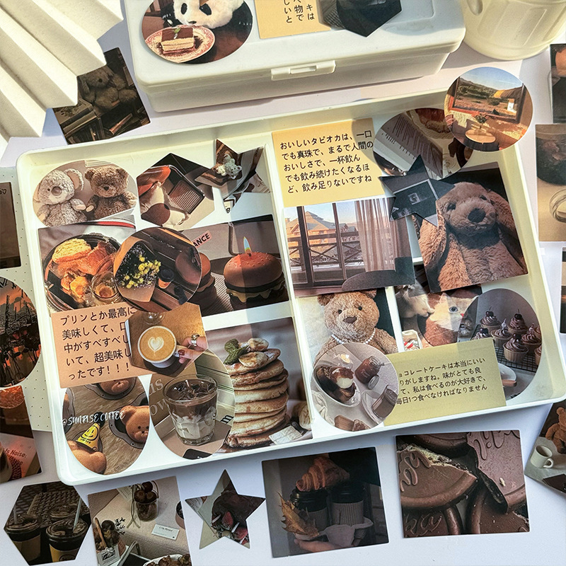 ハンドブック素材レトロロング英語焼け特殊形状ステッカー雰囲気ハンドブック diy 学生装飾ステッカーパック
