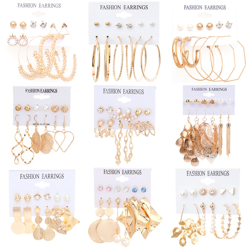 欧米のレトロな耳輪耳飾りメッキ金色の大輪earrings金属誇張大円イヤリングセット