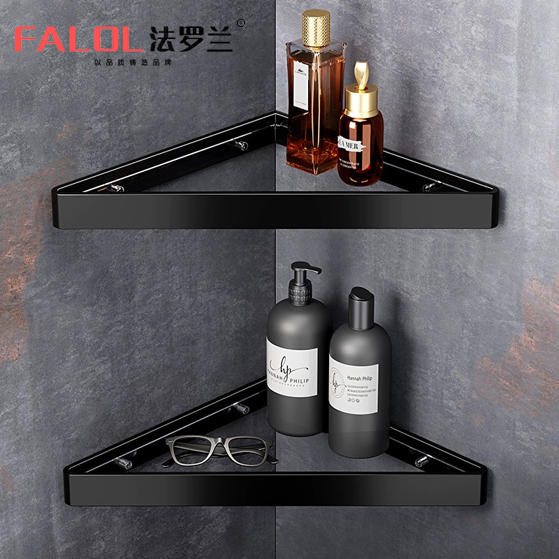 穴なし三脚浴室トイレステンレス黒色コーナーフレーム強化ガラス収納棚壁掛け