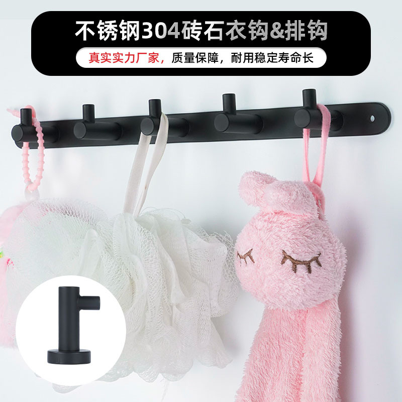 ステンレス鋼の軽い高級フックキッチン壁フック浴室ハンガーブラックパンチフリーコートフック強力な耐荷重