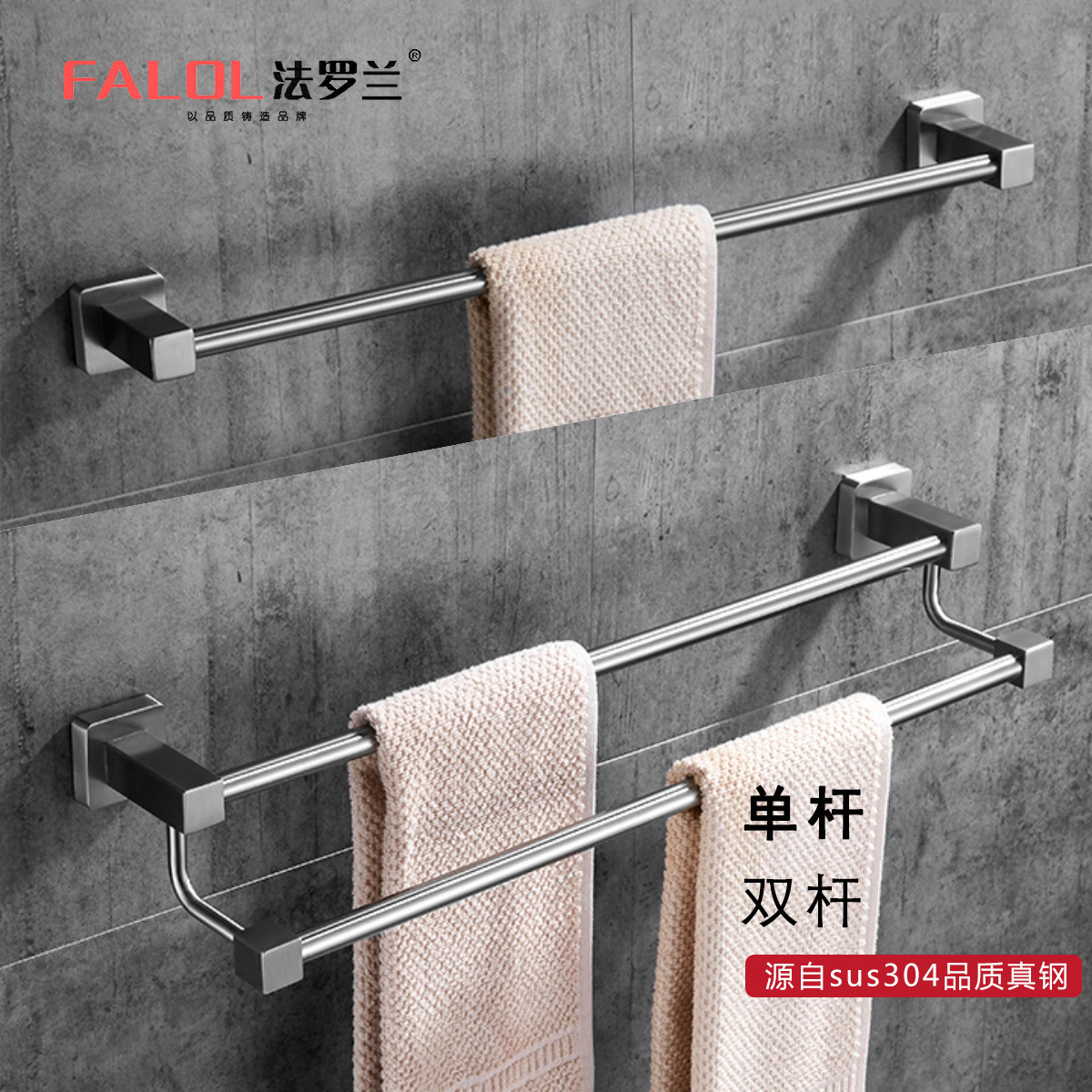 バスルームシンプルタオルラック304ステンレス製伸線タオル二重棒トイレ壁掛け式角型タオル掛け棒