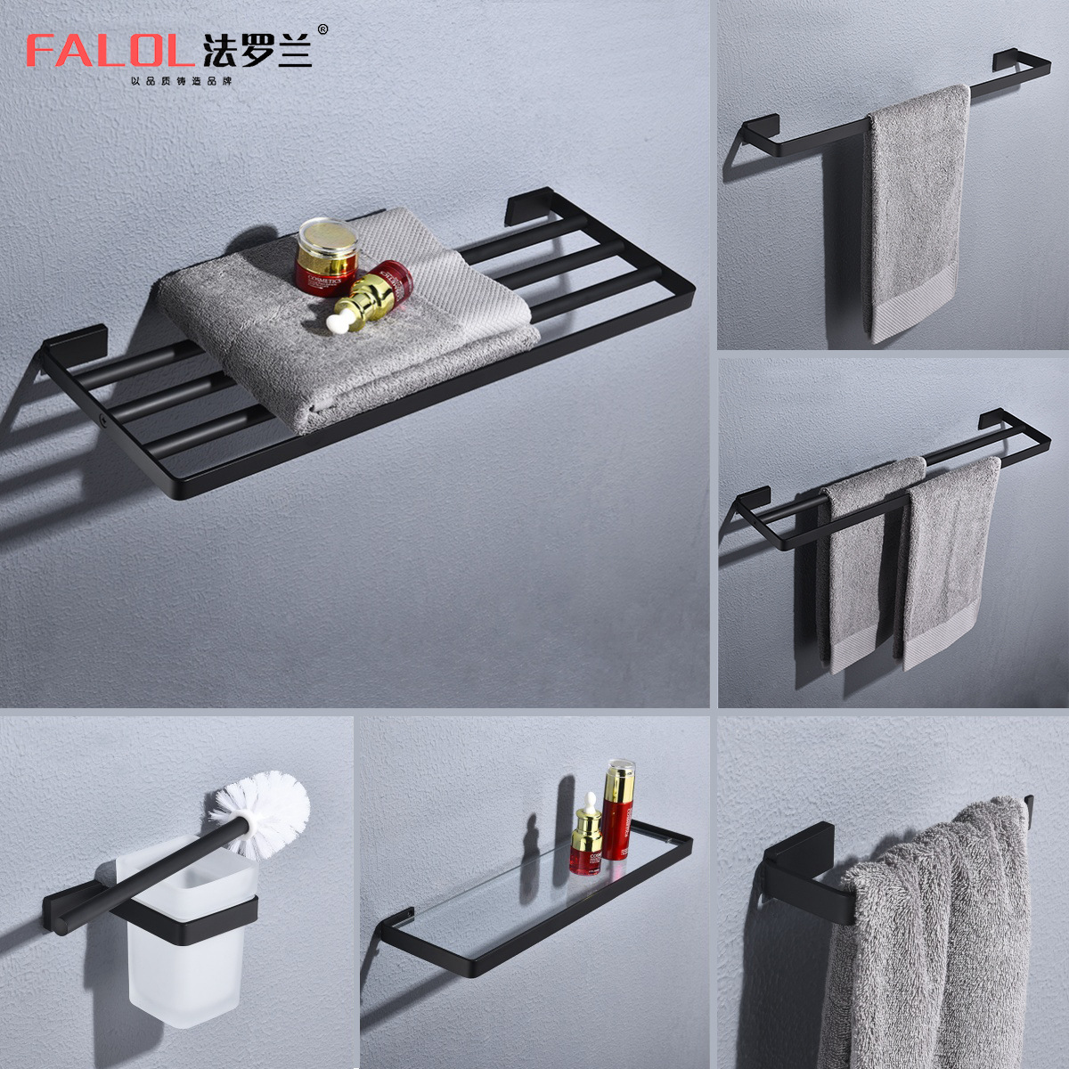 白いタオル掛け304ステンレス黒色バスタオル掛け浴室壁掛け式穴開けタオル収納棚棚棚棚棚