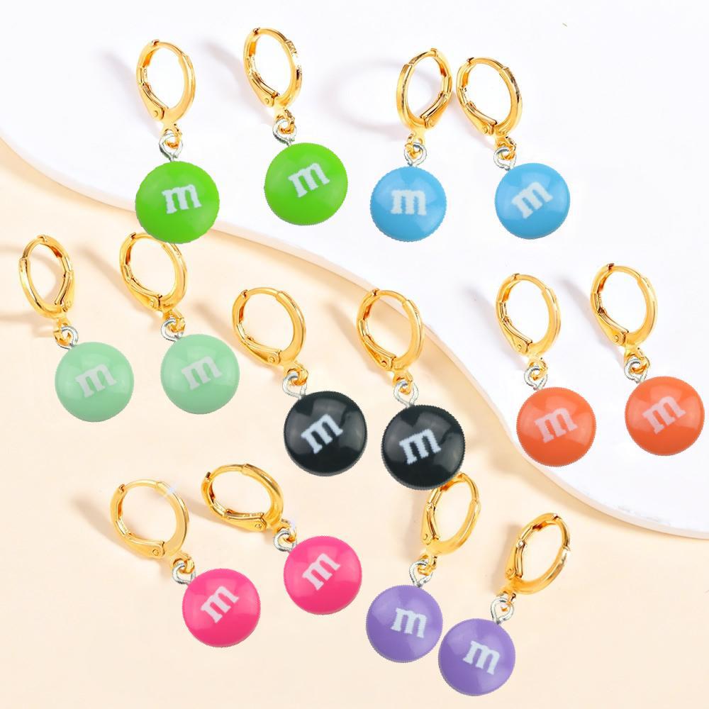 国境を越えた樹脂カラー円形キャンディーM豆シリーズイヤリングアマゾン熱売sheinクリエイティブ漫画イヤリング潮