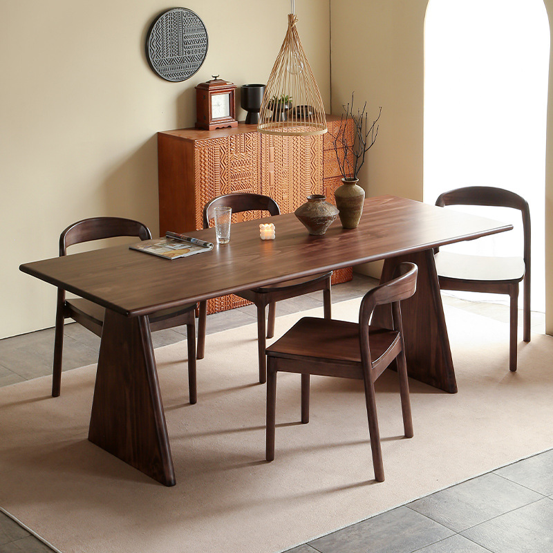 ライト高級ブラックウォールナット無垢材ダイニングテーブルティーテーブルモダンシンプルホーム長方形コンビネーションデスク全無垢材テーブル