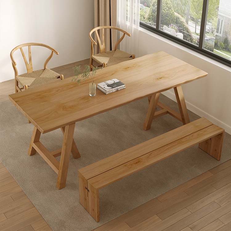 北欧モビーンネットレッドダイニングテーブル無垢材長方形ダイニングテーブルシンプルレストランレストランログリビングルーム大型ダイニングテーブル