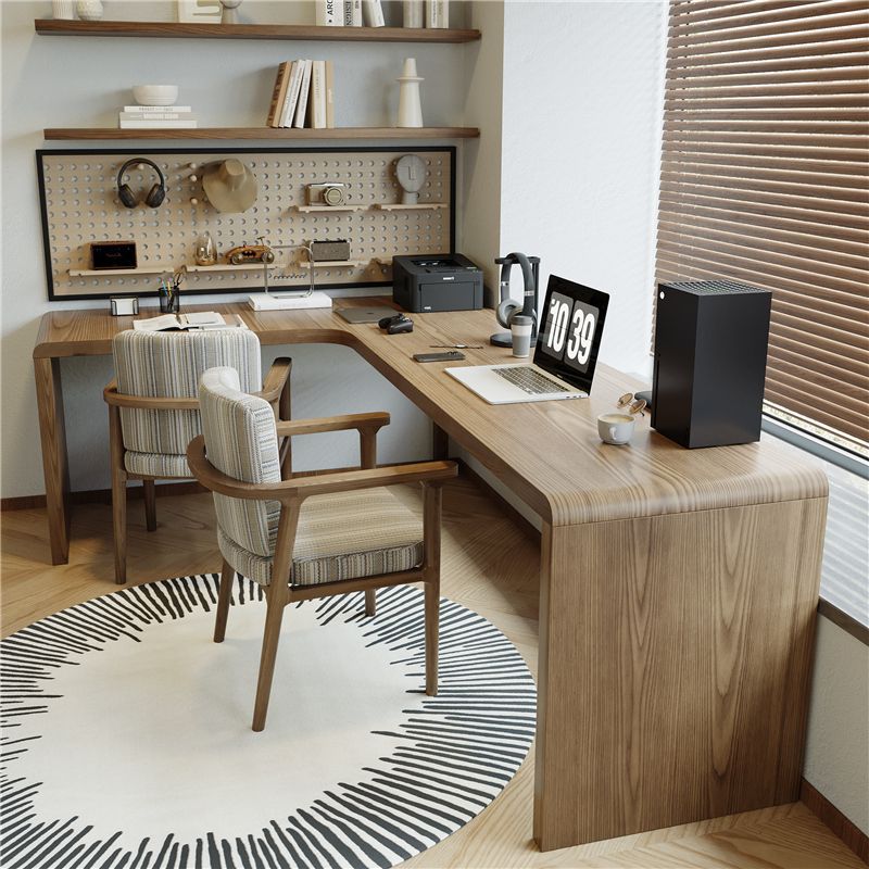 寝室用総無垢材コーナーデスク L字型パソコンデスク ダブルコーナーデスク コーナー7字型ロングワークベンチ