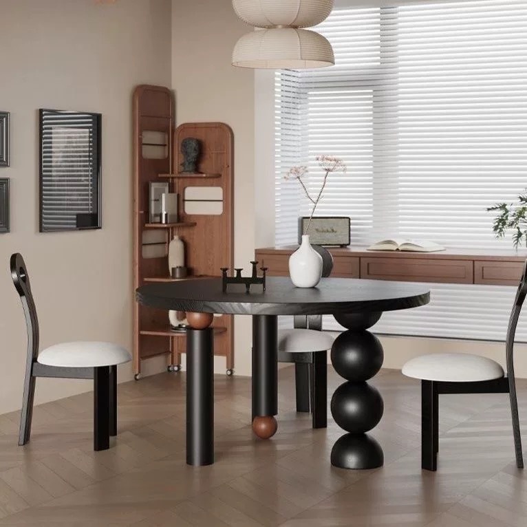 デザイナークリエイティブラウンドダイニングテーブル中世フランス家庭用インターネットセレブダイニングテーブル北欧黒無垢材ダイニングテーブル交渉テーブル