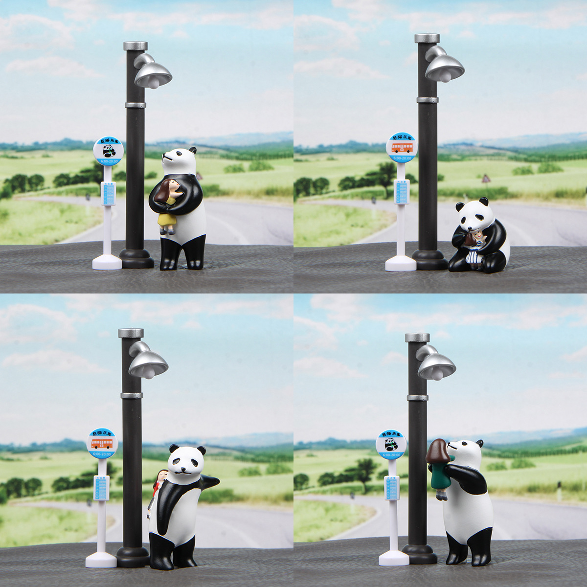 雨の夜中バス停街路灯パンダ Xinyu クリエイティブ人形手作り車の装飾車内装飾人形