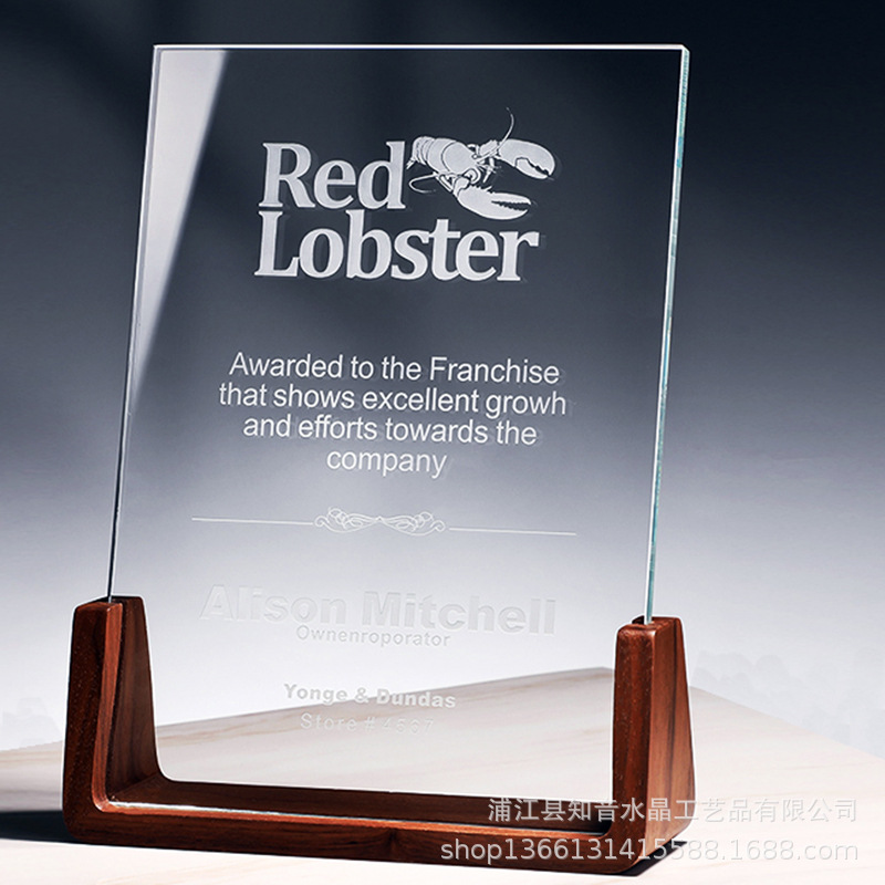 創意水晶実木トロフィーカスタム高級大気メダル授権牌年会従業員栄誉授賞記念品