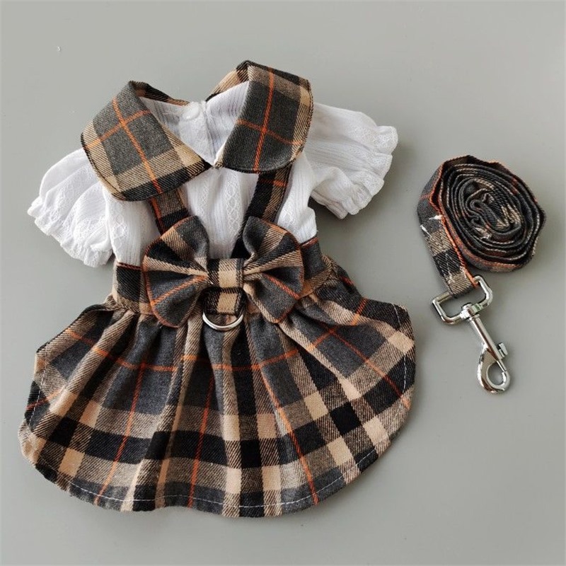 韓国版 JK スカート 牽引ロープ お出かけ ペット 猫 テディ ポメラニアン ビション 犬服 夏 小型犬 夏 薄手