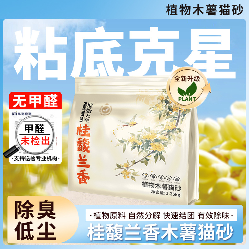 オリジナルスカイタピオカ猫砂植物混合猫砂天然消臭ノンスティック底ダストフリー吸水凝集無色虹