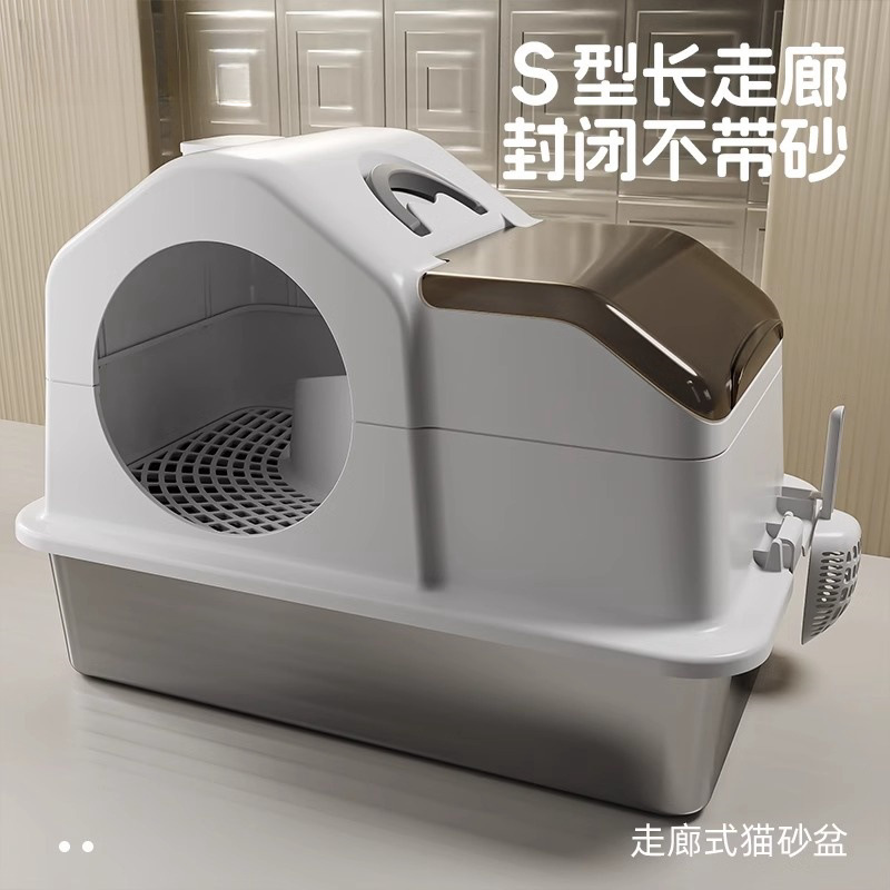 廊下型猫トイレ ステンレス製 特大 完全密閉型猫トイレ 強化透明防臭フリップカバー