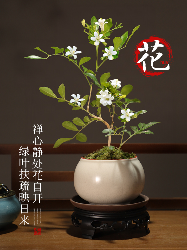 四季咲きの金縁の九里香鉢植え、新しい中国禅盆栽植物、オフィスの花、デスクトップの虹