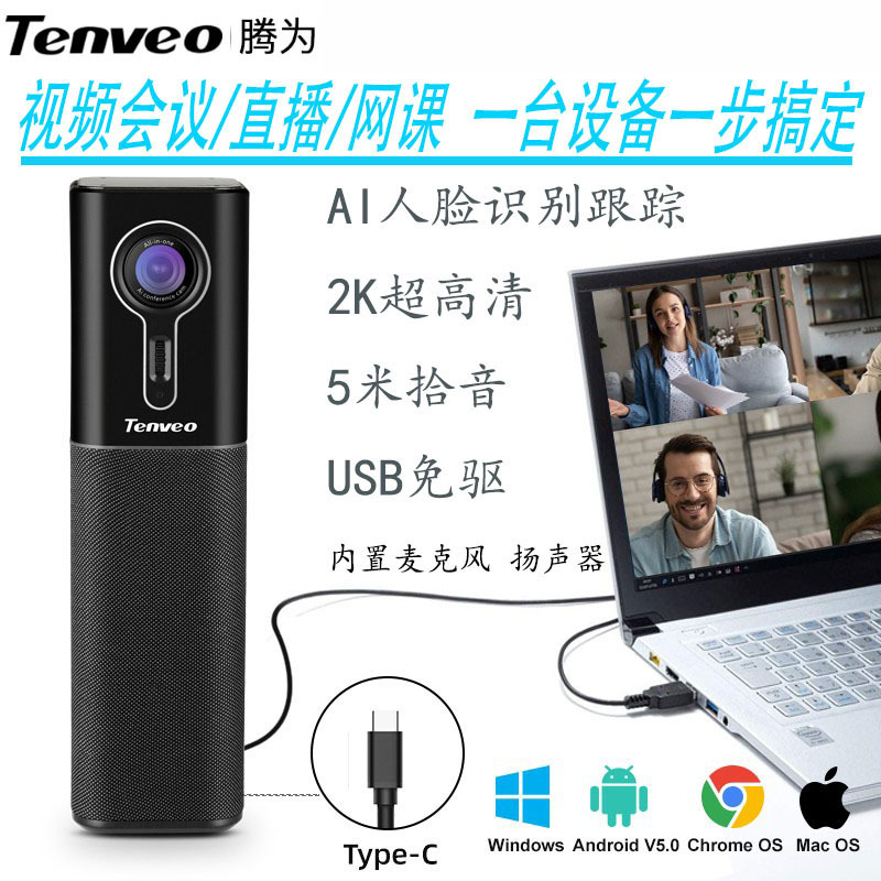 Tenveo顔追跡ビデオ会議カメラ音声ビデオ会議マイク無料2kハイビジョン広角