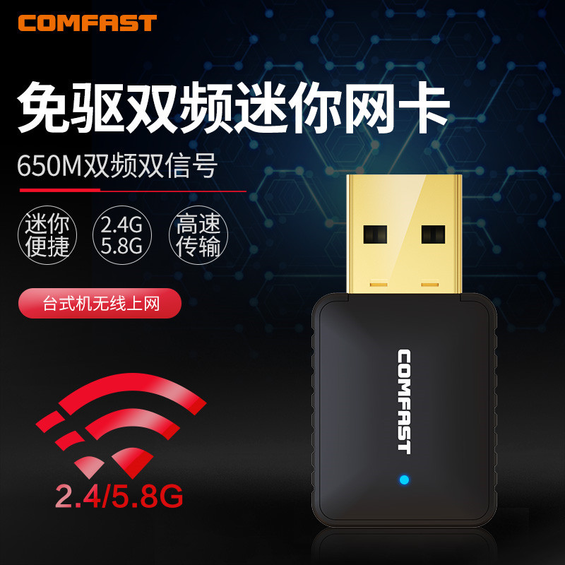 無料駆動5gデュアルバンド650m無線ネットワークカードルーターwifi受信機パソコン外付けusb送信機
