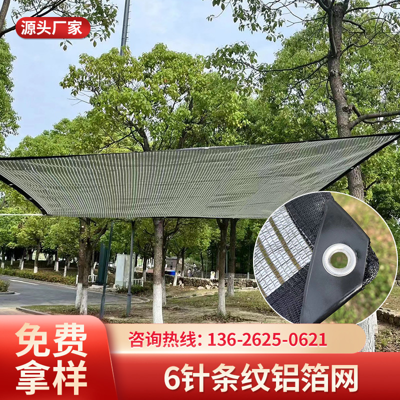 メーカーは6針のストライプのアルミ箔のネットpe材質の日よけネットの自動車の日焼け止めネットの屋外遮光を直接販売しています。