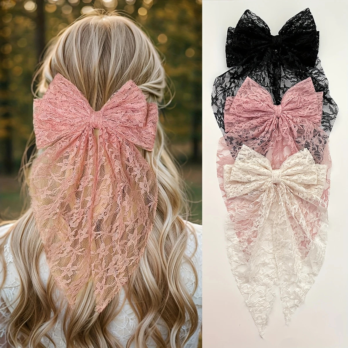 国境を越えて人気の超大型リボンロングリボンヘアクリップ、スプリングクリップ、後頭部用、女性らしいインス風トップクリップヘアアクセサリー